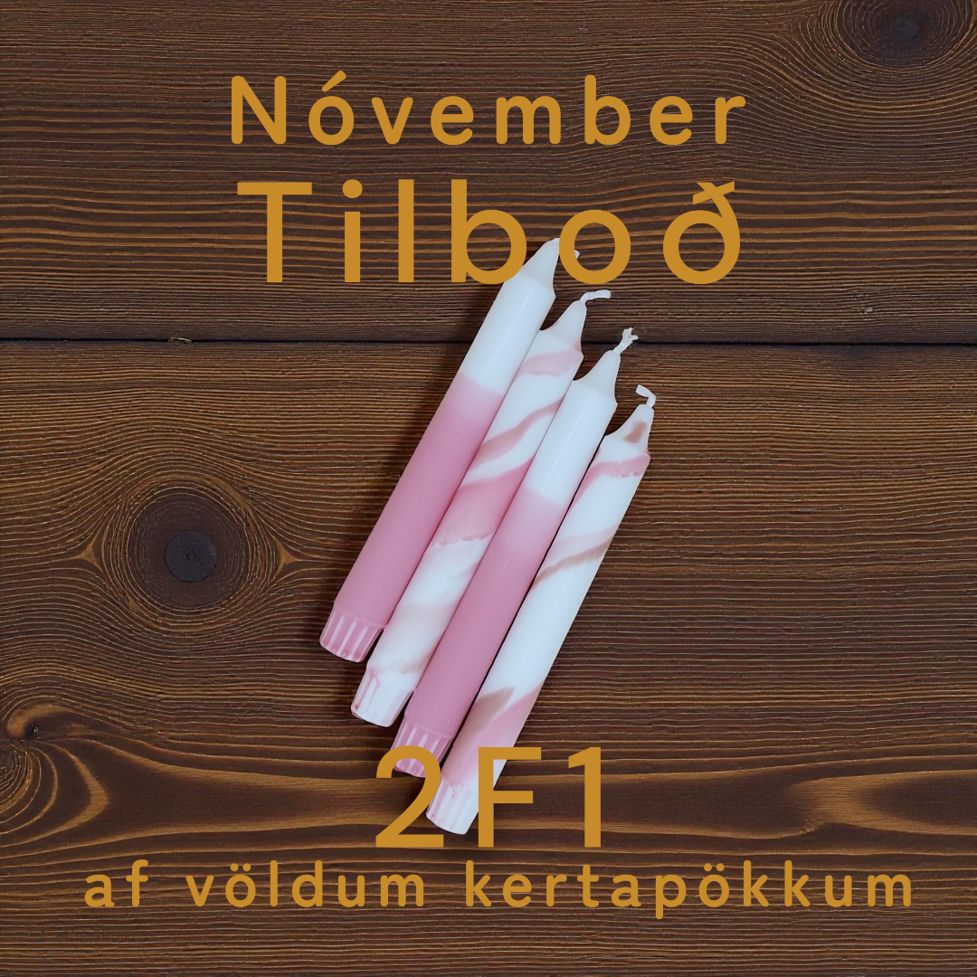 Í nóvember býður Hjartastaður upp á 2 fyrir 1 af völdum handlituðum kertum – fullkomið tækifæri til að fylla heimilið af birtu og hlýju.