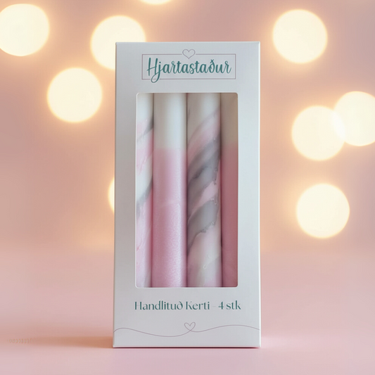 Páska kerti blönduð Gul & Bleik | 4 stk Handlituð kerti