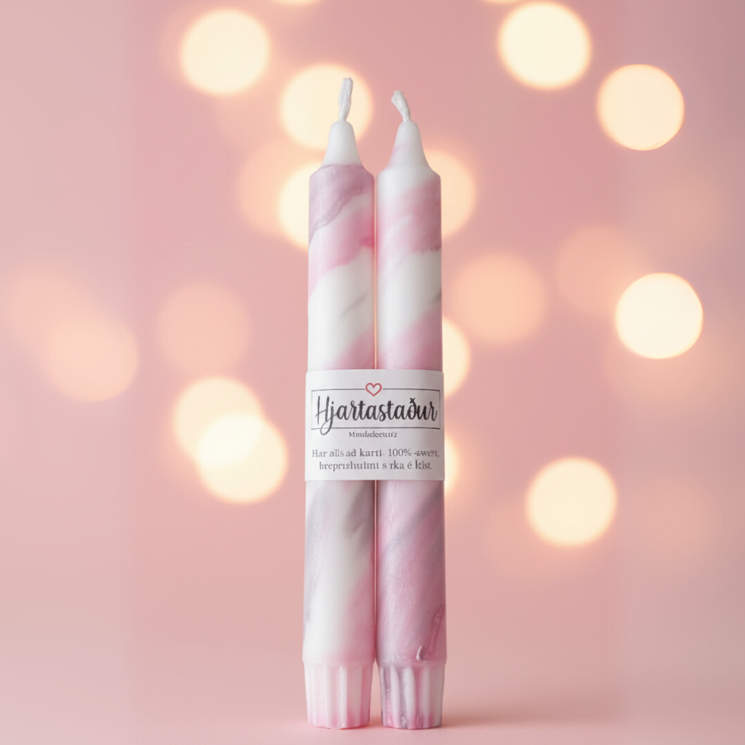 Falleg handlituð kerti úr 100% stearíni, framleidd á Íslandi.