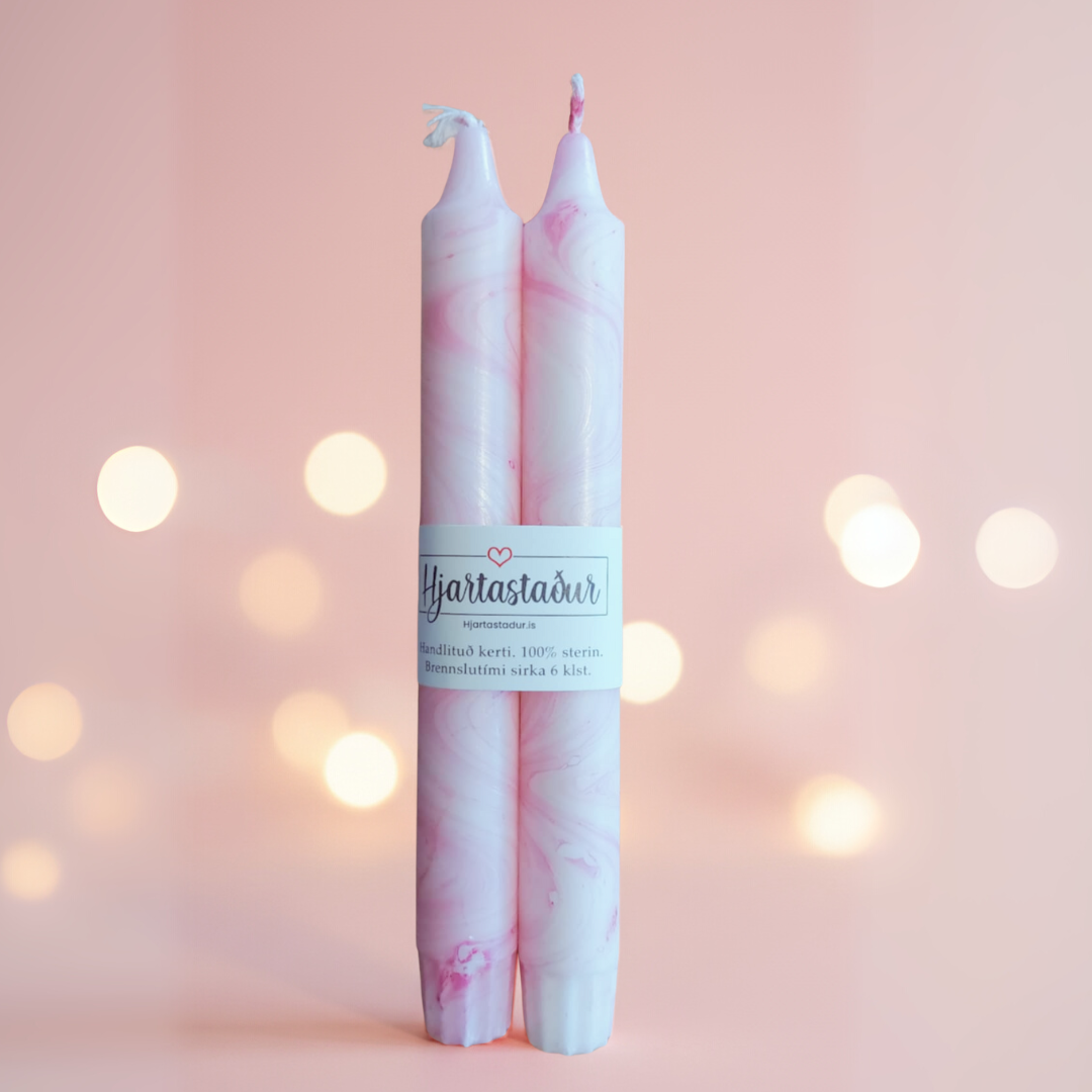 Falleg handlituð kerti úr 100% stearíni, framleidd á Íslandi.