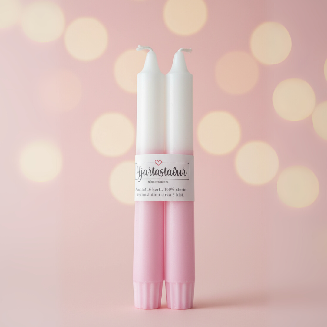 Handlituð kerti frá Hjartastað – Bleika slaufan